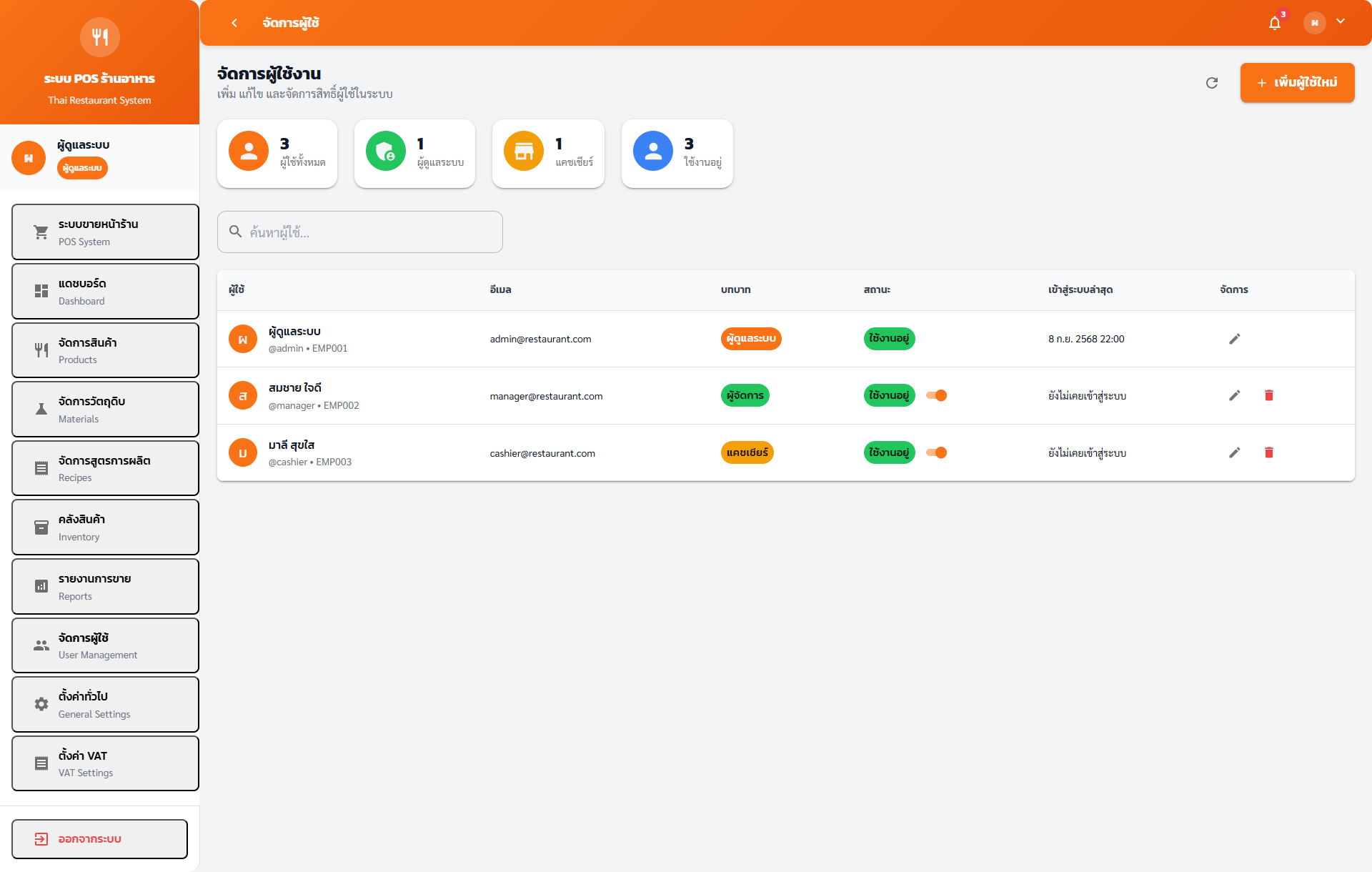 - สร้าง แก้ไข ปิดและเปิดการใช้งานผู้ใช้พร้อมขั้นตอนยืนยัน.